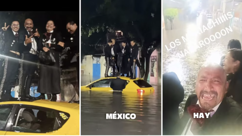Mariachis se quedan atrapados en medio de inundación, su reacción se viraliza por su gran humor
