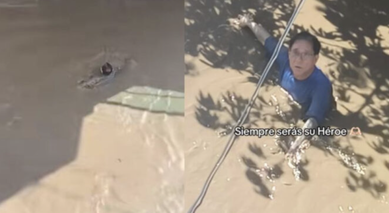 Fue a través de la cuenta @ladelostenis de Tik Tok, donde la usuaria compartió el video de su padre, quien valientemente nadó en la inundación en Poza Rica, para llegar hasta donde se encontraba su hermana y sus sobrinas a pesar del nivel del agua.