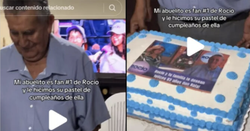 En el video, se ve el pastel temático con el rostro de Rocío y una imagen de él, detalle que su familia cuidó con mucho cariño. Fue l nieta quien grabó ese momento tan emotivo durante el cumpleaños número 83 de su abuelo.