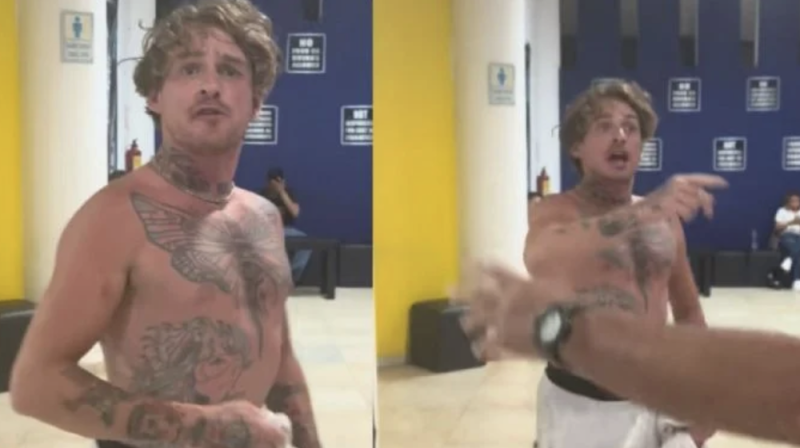 El video tiene tres cortes. En uno de ellos, el extranjero intenta golpear con su camiseta a la persona que lo graba, mientras se escucha una voz femenina que dice: “A ver, pégame” y “te vamos a hacer viral un rato”.